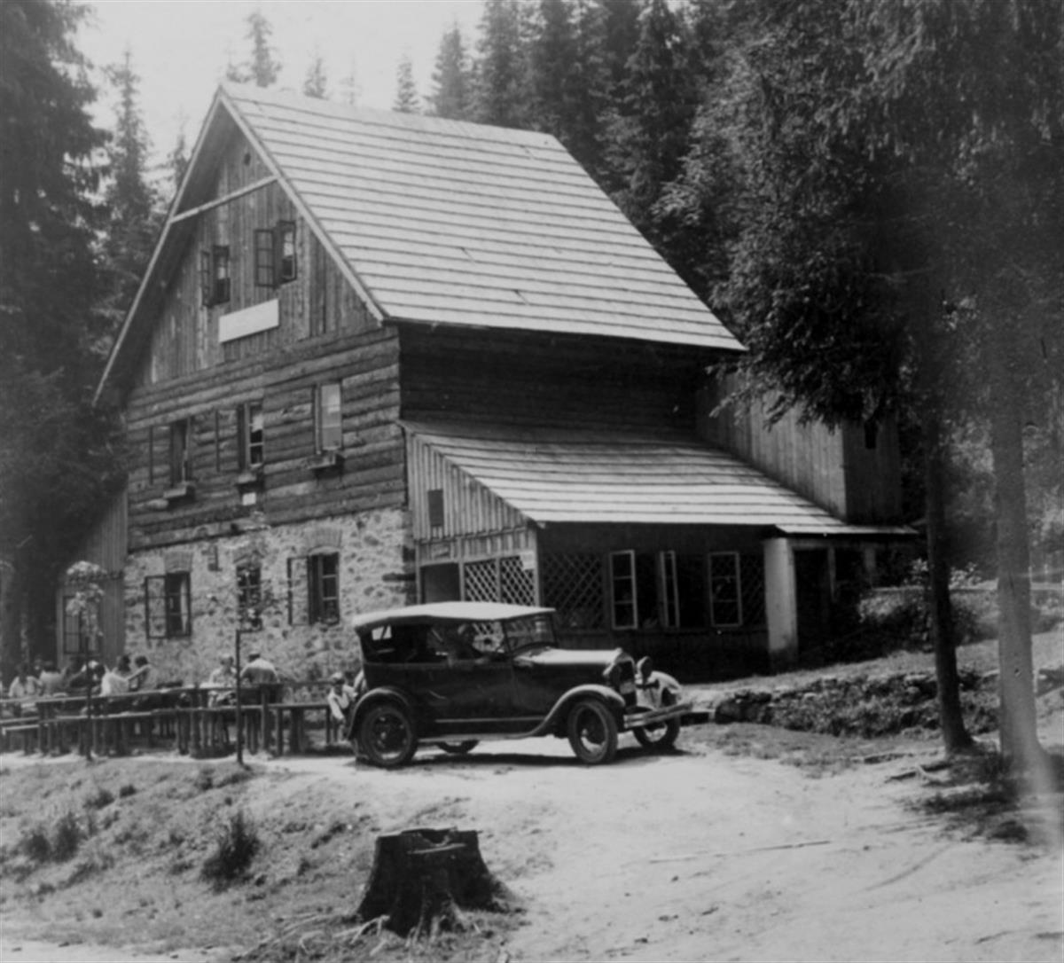 Od Pramenů Vltavy se před 100 lety rozbíhaly takřka všechny barvy značených cest – červená na Bučinu a do Luzenského údolí, žlutá na Modravu a modrá vedla do Kvildy. Turistický průvodce z roku 1923 ke stavbě chaty uvádí: „nedaleko pramenu jest roku 1922 postavena nákladem velkostatku Zdíkov a Klubu československých turistů chata s občerstvením a noclehy.“ Zmiňme si některé pasáže z povolení pro stavbu chaty a povolení k provozu hostinské a výčepnické živnosti. Ke stavebnímu povolení bylo připojeno několik podmínek: „ve všech místnostech se postaví zdravotní plivátka a umístí nápisy zakazující plivání na zem, obě noclehárny se propojí s nájemcovým elektrickým zvonkem. Vzhledem k materiálu, ze kterého je chata vystavěna, musí být pro případ požáru umístěny nádoby s vodou a kromě toho vždy přiměřený počet hasičských košů na vodu. Toalety musí být zřízeny na severovýchodní straně dvora za domem nájemcovým. WC musí být kryté, uzavřené ze všech stran a odpad sveden do odvodového kanálku. Schodiště ke studentské noclehárně musí být vybaveno zábradlím a pro případ požáru ohnivzdorně zapečetěné. Nocležníci, sobě cizí, musí být vždy děleni podle pohlaví, v místnostech a na schodišti se nesmí kouřit, o tom informující cedulky musí být umístěny v chatě. Také musí být u chaty k dispozici dva žebříky. Ve všech místnostech hostinských a v kuchyni musí být dbáno na čistotu. Budova se musí opatřit hromosvodem. Kniha cizinců musí být pečlivě vedena a vždy na žádost orgánů veřejné bezpečnostní služby předložena. Majitel koncese se musí podrobit veškerým předpisům živnostenského zákona a nařízením příslušných úřadu. Při každé změně nájemce je potřeba zažádat o schválení příslušný úřad.“ Povolení na provoz hostinské a výčepnické živnosti v chatě obsahovalo tato oprávnění: přechovávání cizinců, podávání pokrmů, výčep piva, vína a ovocného vína, podávání lihových nápojů, kávy, čaje, sodové vody a jiného občerstvení.