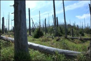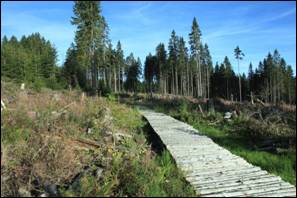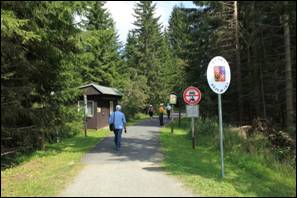 Po široké pískové cestě bez výškových rozdílů (směrovka na parkoviště Schwellgraben) přijdete po1 km na Rastplatz Mückenloch u silnice z Finsterau na Bučinu