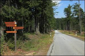 - odbočka ze žluté (od Teufelsbachtasse) na červenou (na Bučinu) 3,7 km