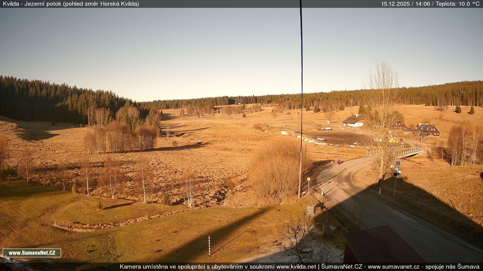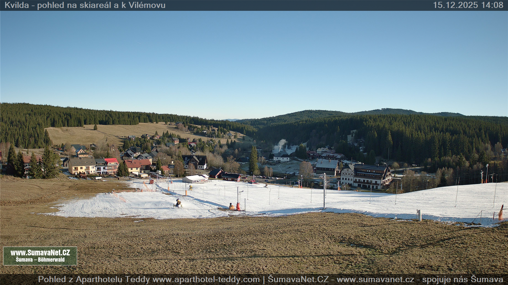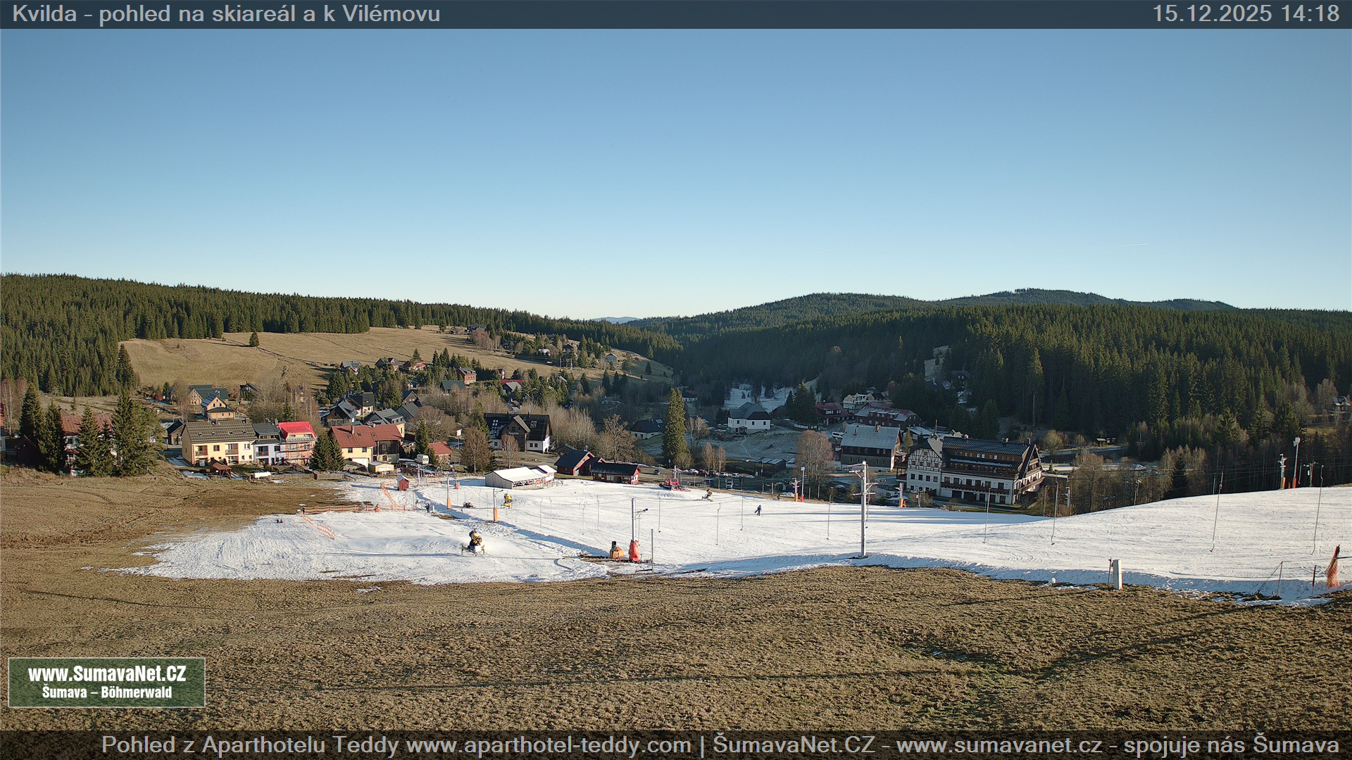 Page contentWebCamsKvildaBig Image15.12.2025 12:15:10Select time: Archive: Today 1 day 2 days Week Month 100 days Year Provozováno Informačním serverem ŠumavaNet.CZ ŠumavaNet.CZ & Aparthotelem TeddyKvilda - Jezerní potokBig Image15.12.2025 12:09:23Select time: Archive: Today 1 day 2 days Week Month 100 days Year Kvilda - centrum15.12.2025 12:14:39BučinaBig Image15.12.2025 12:06:07Select time: Archive: Today 1 day 2 days Week Month 100 days Year Další webkamery Tyto dvě kamery Vám přinášíme ve spolupráci se sumava.eu Refresh page
