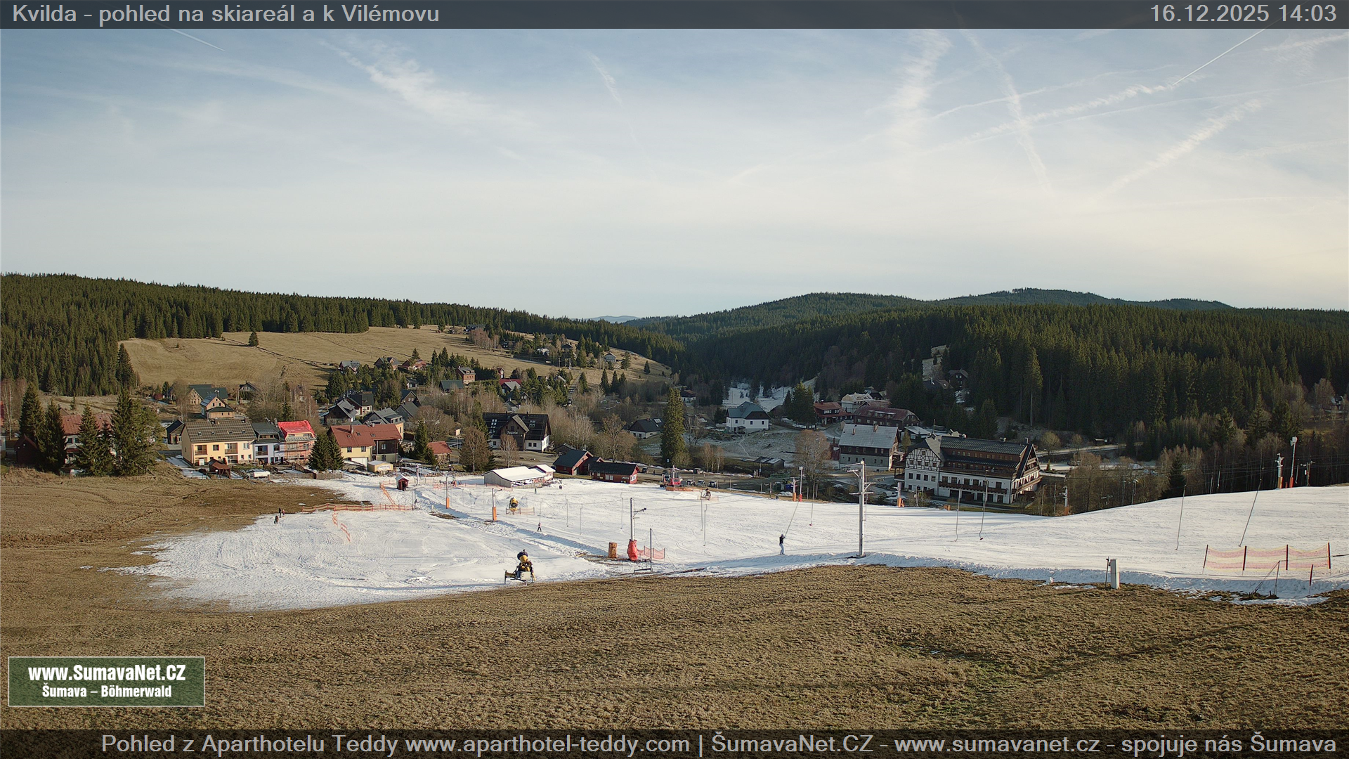 Page contentWebCamsKvildaBig Image15.12.2025 14:07:13Select time: Archive: Today 1 day 2 days Week Month 100 days Year Provozováno Informačním serverem ŠumavaNet.CZ ŠumavaNet.CZ & Aparthotelem TeddyKvilda - Jezerní potokBig Image15.12.2025 13:58:03Select time: Archive: Today 1 day 2 days Week Month 100 days Year Kvilda - centrum15.12.2025 14:06:39BučinaBig Image15.12.2025 14:06:07Select time: Archive: Today 1 day 2 days Week Month 100 days Year Další webkamery Tyto dvě kamery Vám přinášíme ve spolupráci se sumava.eu Refresh page