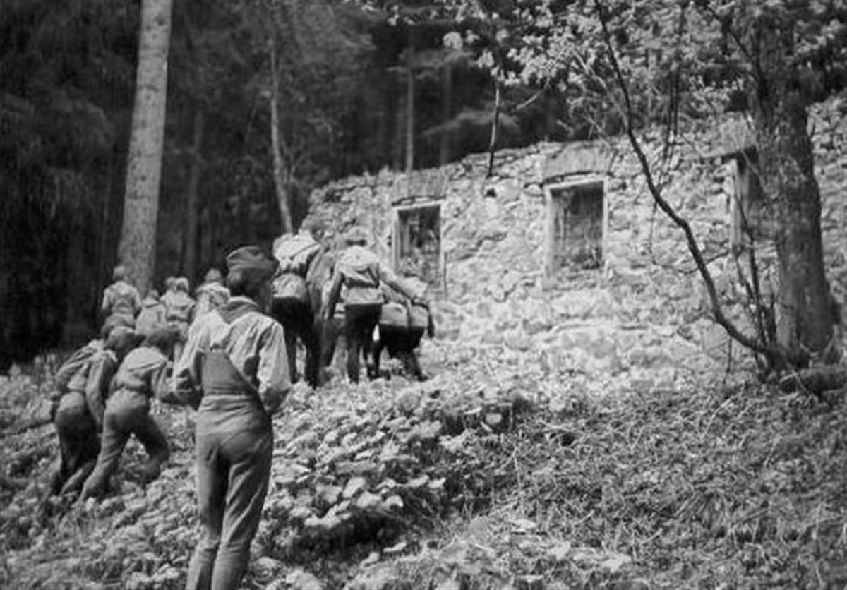 Po záboru šumavského pohraničí Německem v roce 1938 provoz chaty utichl. Utichl jen turisticky. Ve válečných letech zřídili nacisté na linii šumavského pohraničí desítky pracovních táborů pro zajatce, kteří v létě i zimě těžili v lese dřevo a vypomáhali při dalších lesních a zemědělských pracích. V roce 1942 byl jeden takový tábor zřízen i v chatě u Pramenů Vltavy. Na ploše cca 130 metrů čtverečních zde živořilo na sto převážně sovětských zajatců. Turistické pokoje byly přizpůsobeny velkému počtu obyvatel. Každá místnost byla vybavena pryčnami a hrubě opracovanými lavicemi. Okna byla zamřížována a místy propletena ostnatým drátem. Na dveřích byly silné trámové závory. Zajatci těžili v těžce dostupných částech okolních lesů dřevo a rašelinu a pomáhali na polích na Knížecích Pláních a Bučině. K zajateckému táboru na Pramenech Vltavy se váže i několik úspěšných i neúspěšných pokusů o útěk – ti neúspěšní byli na útěku roztrháni psy nebo zahnáni do bažin. Poté, co skončila 2. světová válka a tábor osvobodila americká jednotka při přestřelce s nacistickým strážním oddílem, byla na místě zachráněna skupina asi 70 zubožených zajatců. Nacisté zpustošili celé okolí pramenské chaty.