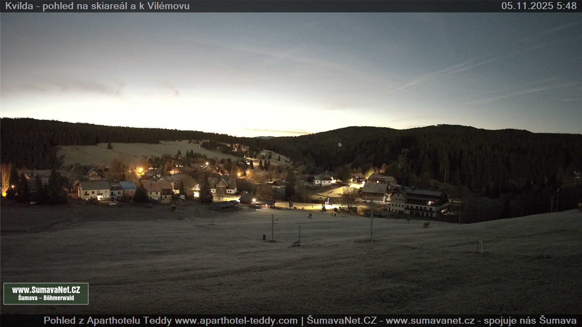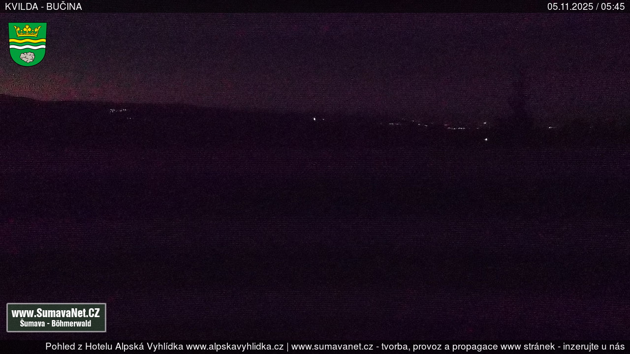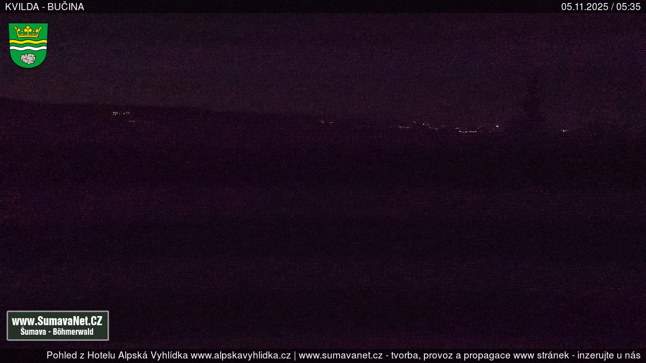 Page contentWebCamsKvildaBig Image05.11.2025 2:48:21Select time: Archive: Today 1 day 2 days Week Month 100 days Year Provozováno Informačním serverem ŠumavaNet.CZ ŠumavaNet.CZ & Aparthotelem TeddyKvilda - Jezerní potokBig Image24.10.2025 7:05:50Select time: Archive: Today 1 day 2 days Week Month 100 days Year Kvilda - centrum05.11.2025 2:48:26BučinaBig Image05.11.2025 2:48:07Select time: Archive: Today 1 day 2 days Week Month 100 days Year Další webkamery Tyto dvě kamery Vám přinášíme ve spolupráci se sumava.eu Refresh page