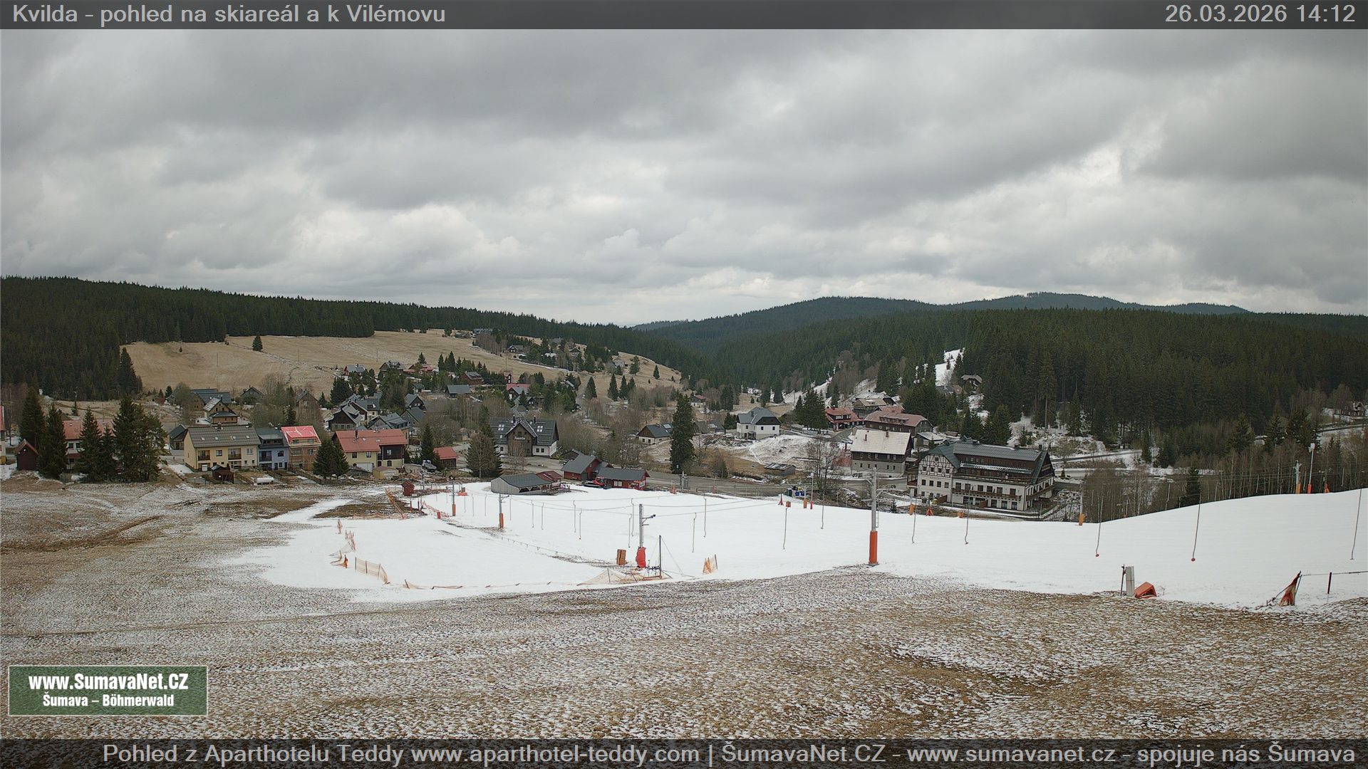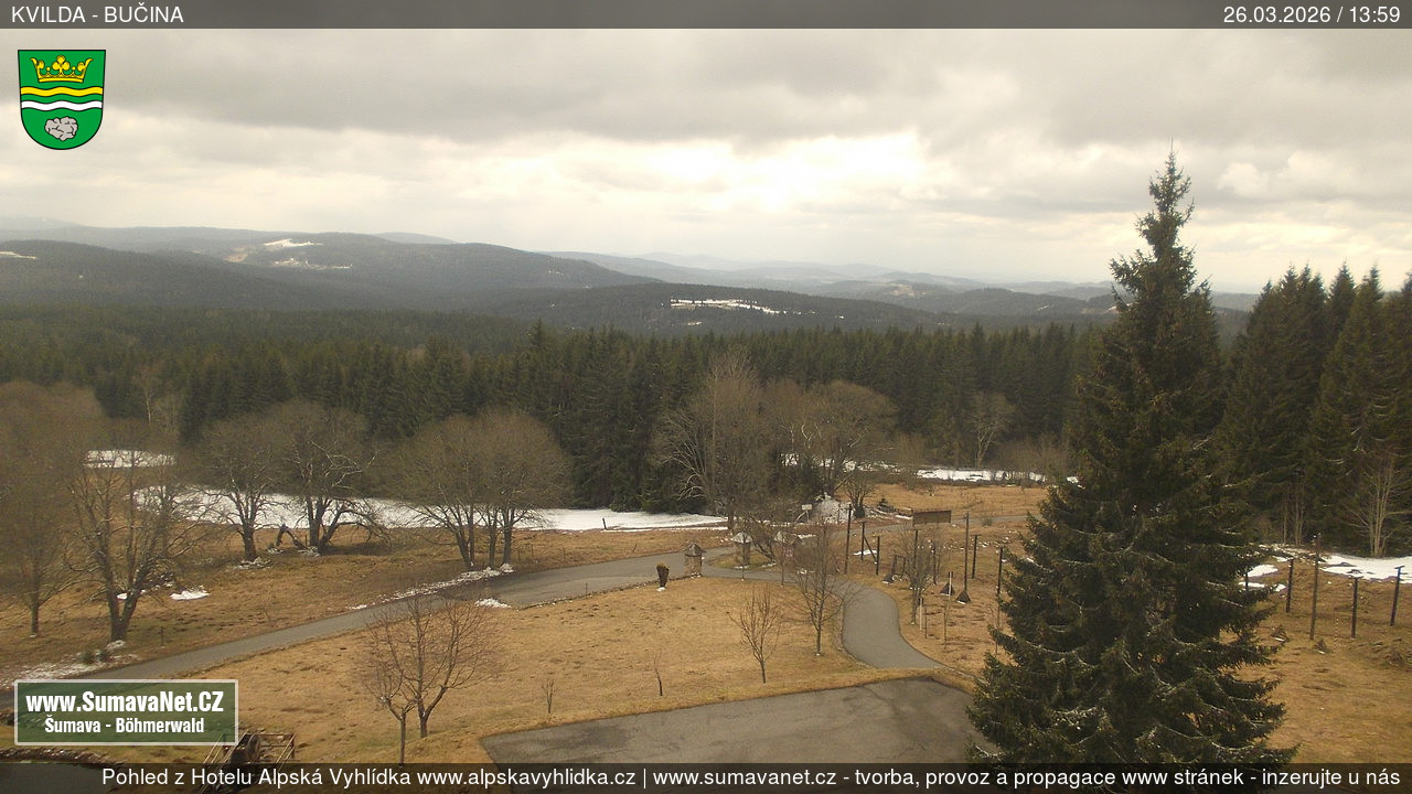Page contentWebCamsKvildaBig Image26.03.2026 12:25:30Select time: Archive: Today 1 day 2 days Week Month 100 days Year Provozováno Informačním serverem ŠumavaNet.CZ ŠumavaNet.CZ & Aparthotelem TeddyKvilda - Jezerní potokBig Image26.03.2026 12:17:11Select time: Archive: Today 1 day 2 days Week Month 100 days Year Kvilda - centrum26.03.2026 12:26:14BučinaBig Image26.03.2026 12:22:10Select time: Archive: Today 1 day 2 days Week Month 100 days Year Další webkamery Tyto dvě kamery Vám přinášíme ve spolupráci se sumava.eu Refresh page