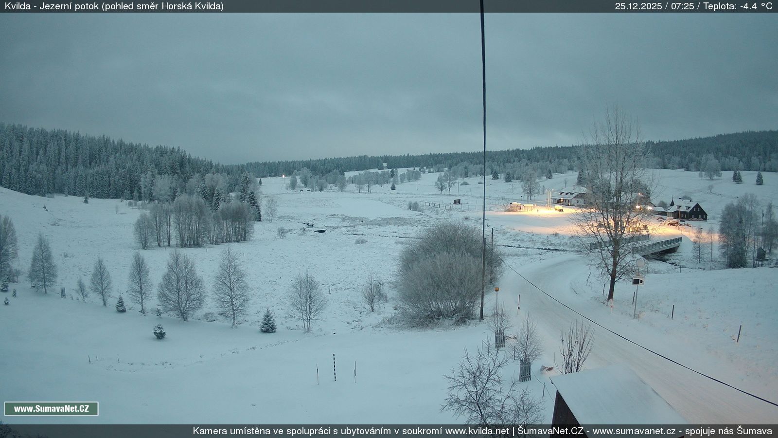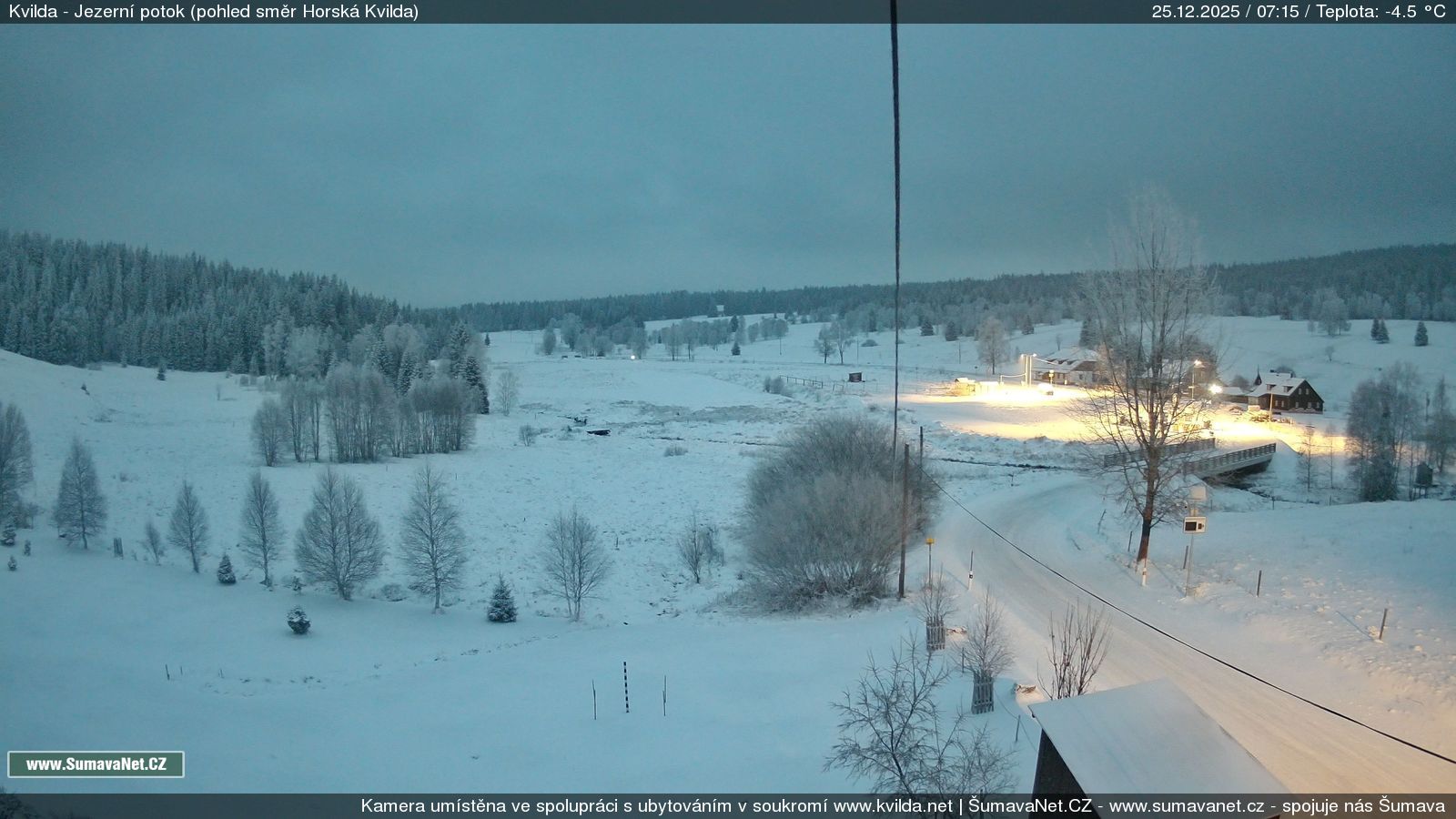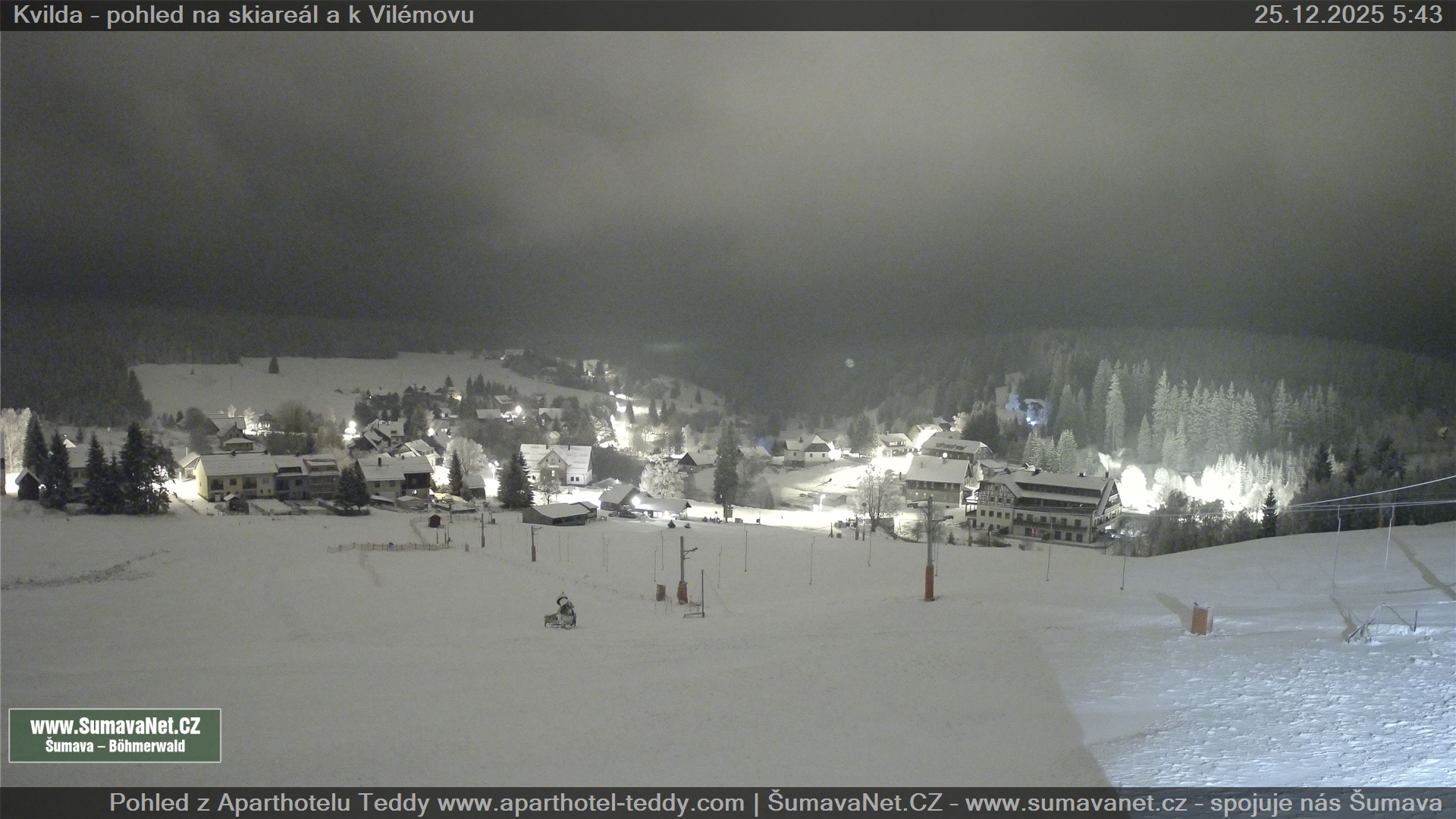 Page contentWebCamsKvildaBig Image25.12.2025 4:04:33Select time: Archive: Today 1 day 2 days Week Month 100 days Year Provozováno Informačním serverem ŠumavaNet.CZ ŠumavaNet.CZ & Aparthotelem TeddyKvilda - Jezerní potokBig Image25.12.2025 3:57:50Select time: Archive: Today 1 day 2 days Week Month 100 days Year Kvilda - centrum25.12.2025 4:04:42BučinaBig Image25.12.2025 3:56:07Select time: Archive: Today 1 day 2 days Week Month 100 days Year Další webkamery Tyto dvě kamery Vám přinášíme ve spolupráci se sumava.eu Refresh page
