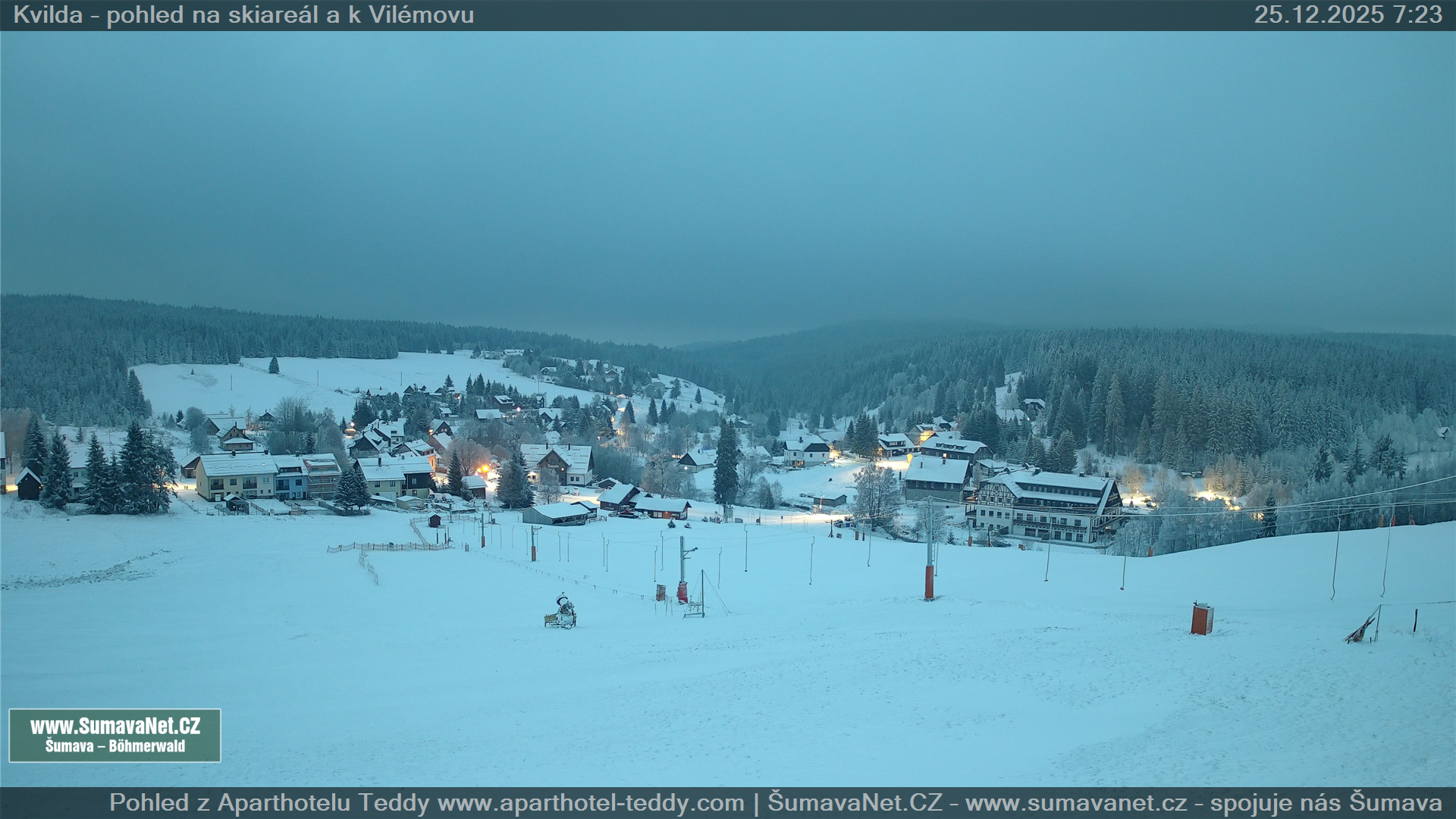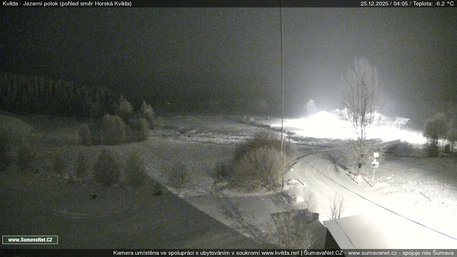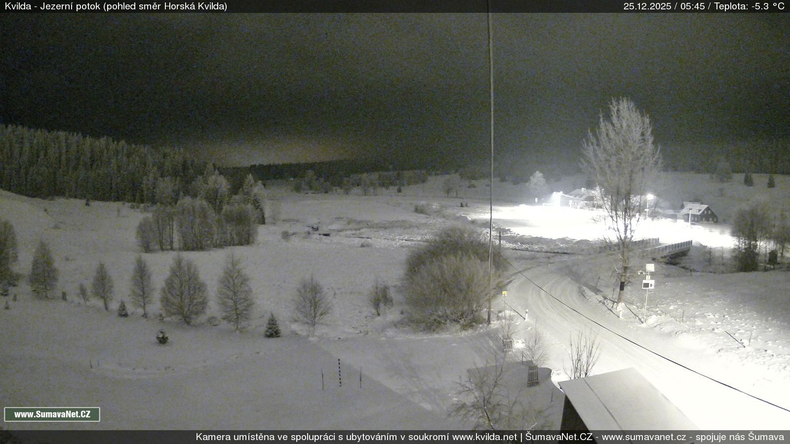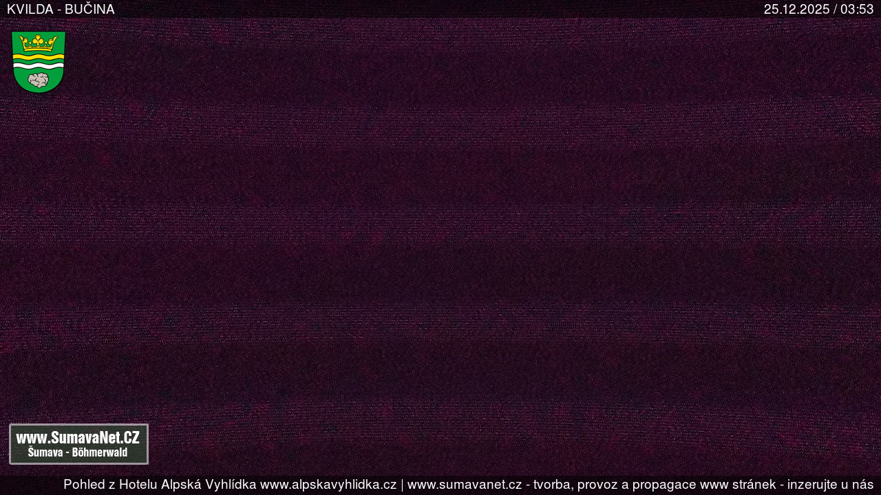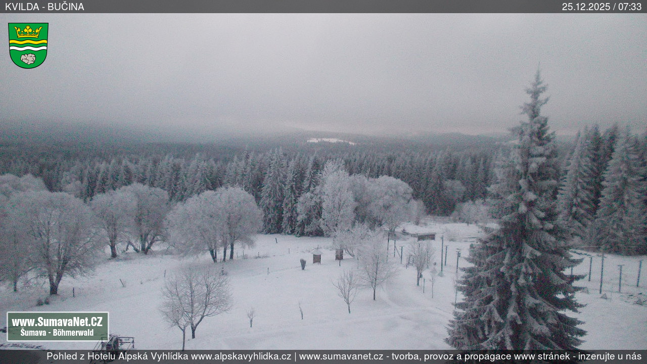 Page contentWebCamsKvildaBig Image25.12.2025 1:48:30Select time: Archive: Today 1 day 2 days Week Month 100 days Year Provozováno Informačním serverem ŠumavaNet.CZ ŠumavaNet.CZ & Aparthotelem TeddyKvilda - Jezerní potokBig Image25.12.2025 1:39:38Select time: Archive: Today 1 day 2 days Week Month 100 days Year Kvilda - centrum25.12.2025 1:46:42BučinaBig Image25.12.2025 1:46:07Select time: Archive: Today 1 day 2 days Week Month 100 days Year Další webkamery Tyto dvě kamery Vám přinášíme ve spolupráci se sumava.eu Refresh page