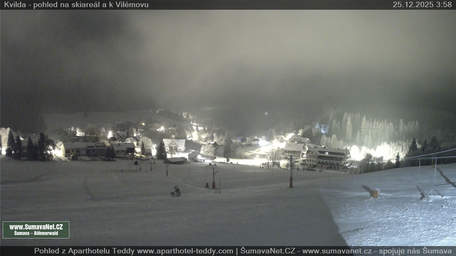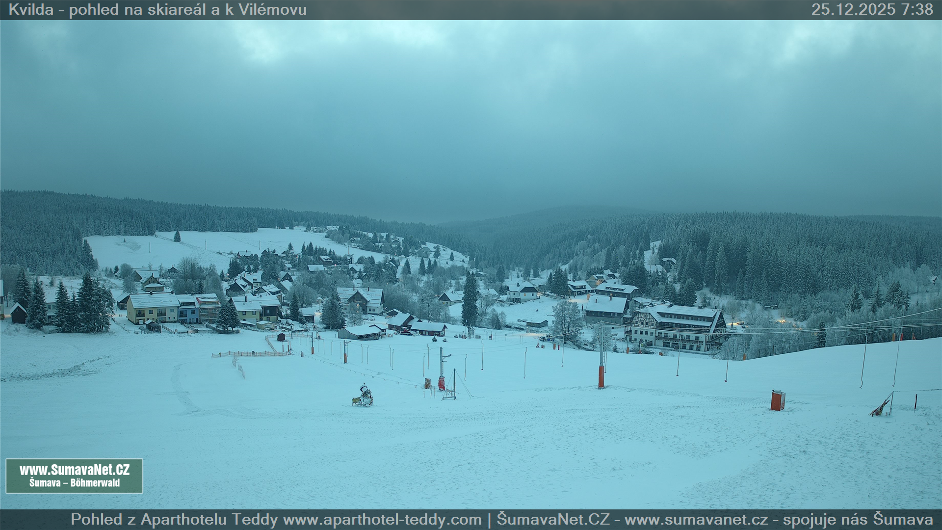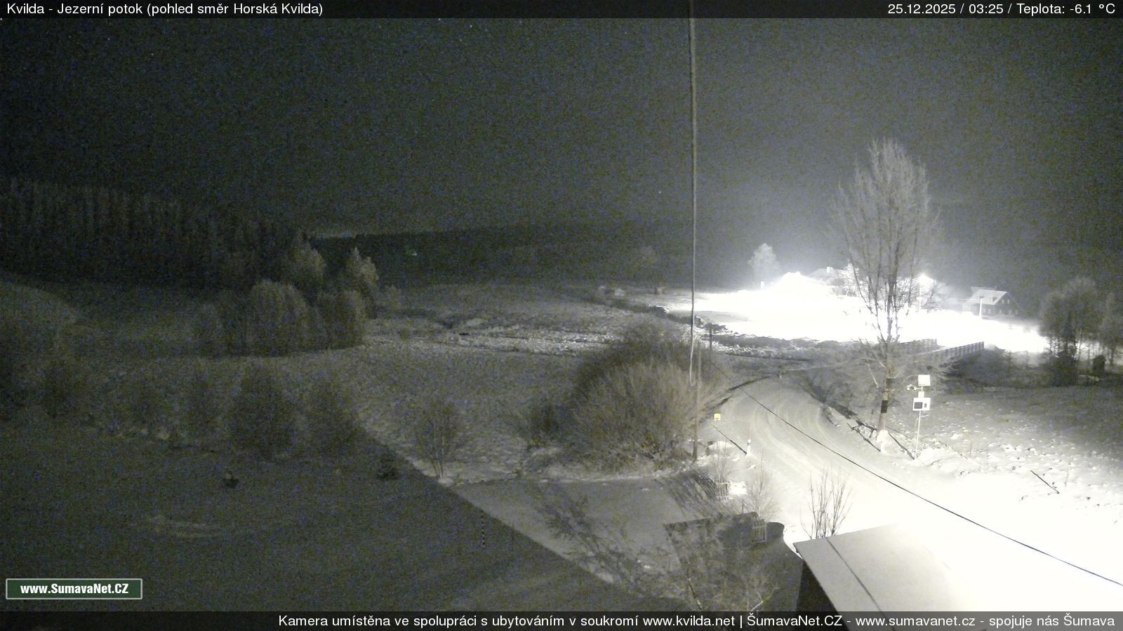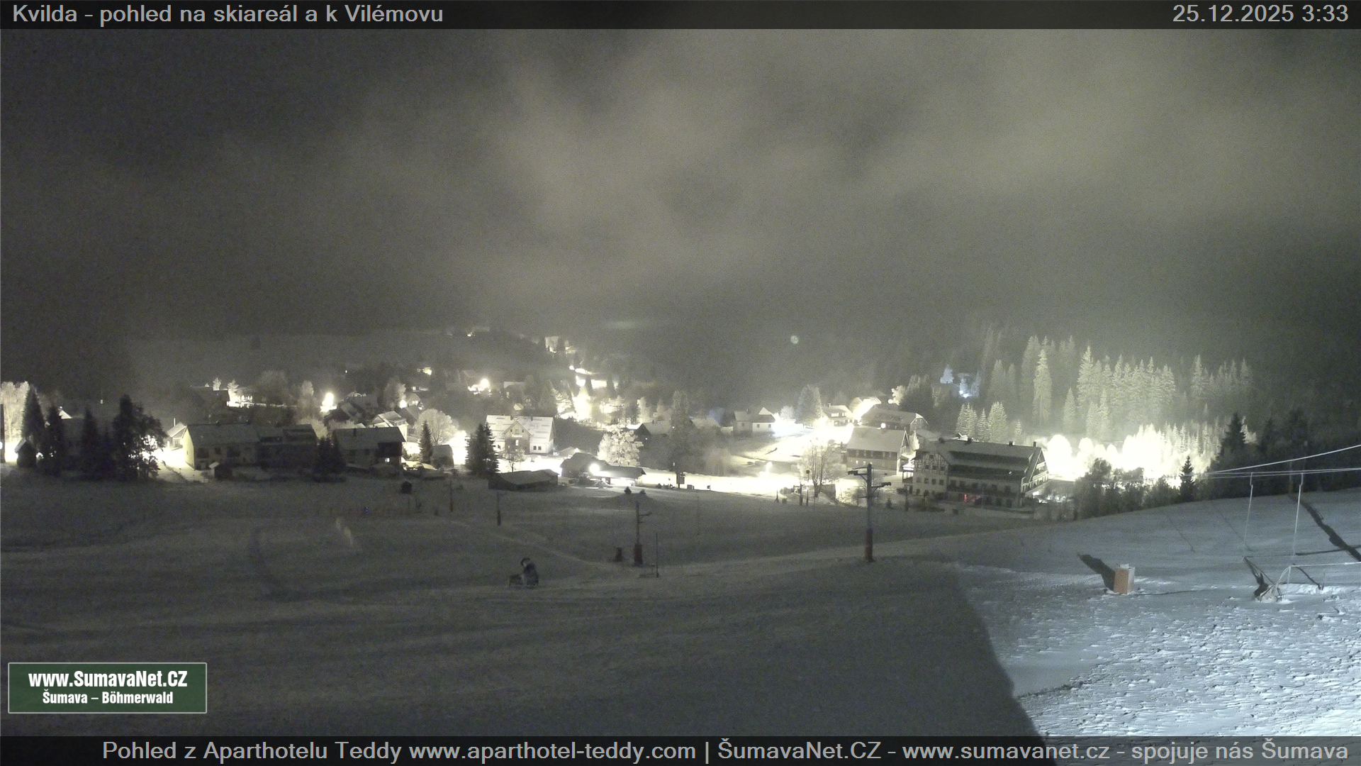 Page contentWebCamsKvildaBig Image25.12.2025 1:48:30Select time: Archive: Today 1 day 2 days Week Month 100 days Year Provozováno Informačním serverem ŠumavaNet.CZ ŠumavaNet.CZ & Aparthotelem TeddyKvilda - Jezerní potokBig Image25.12.2025 1:39:38Select time: Archive: Today 1 day 2 days Week Month 100 days Year Kvilda - centrum25.12.2025 1:46:42BučinaBig Image25.12.2025 1:46:07Select time: Archive: Today 1 day 2 days Week Month 100 days Year Další webkamery Tyto dvě kamery Vám přinášíme ve spolupráci se sumava.eu Refresh page