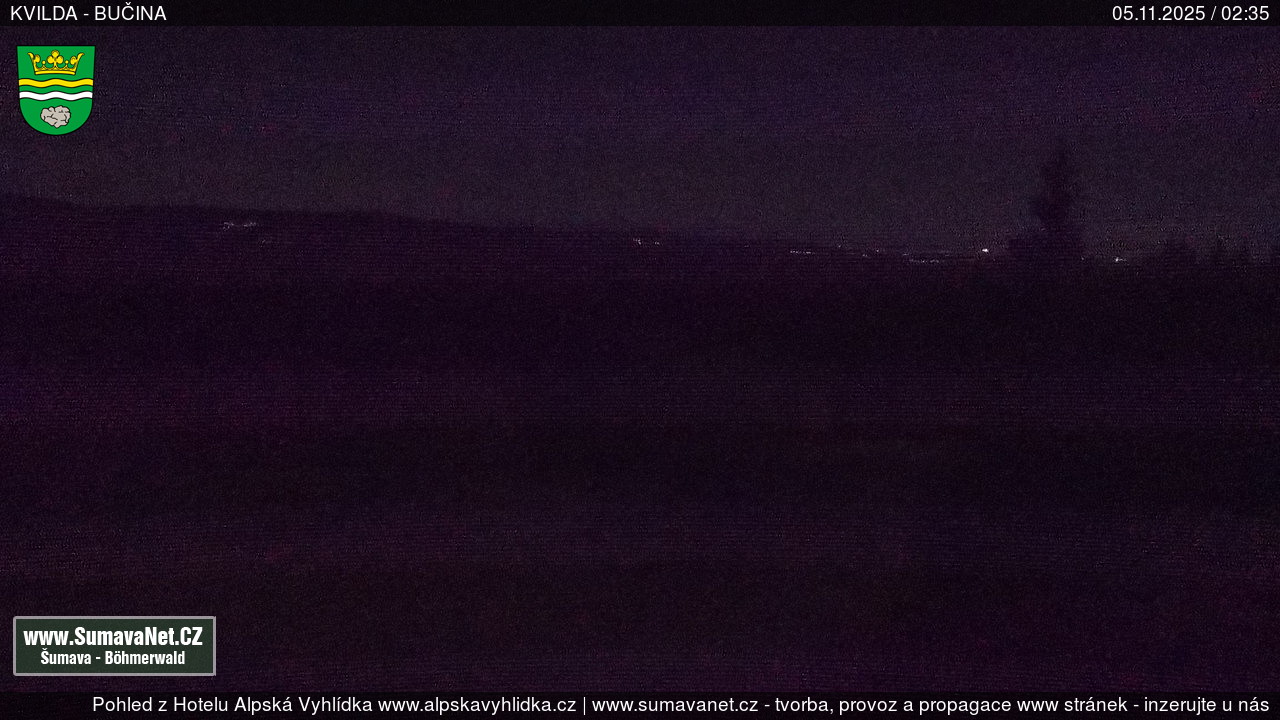 Page contentWebCamsKvildaBig Image05.11.2025 0:26:17Select time: Archive: Today 1 day 2 days Week Month 100 days Year Provozováno Informačním serverem ŠumavaNet.CZ ŠumavaNet.CZ & Aparthotelem TeddyKvilda - Jezerní potokBig Image24.10.2025 7:05:50Select time: Archive: Today 1 day 2 days Week Month 100 days Year Kvilda - centrum05.11.2025 0:26:27BučinaBig Image05.11.2025 0:18:07Select time: Archive: Today 1 day 2 days Week Month 100 days Year Další webkamery Tyto dvě kamery Vám přinášíme ve spolupráci se sumava.eu Refresh page